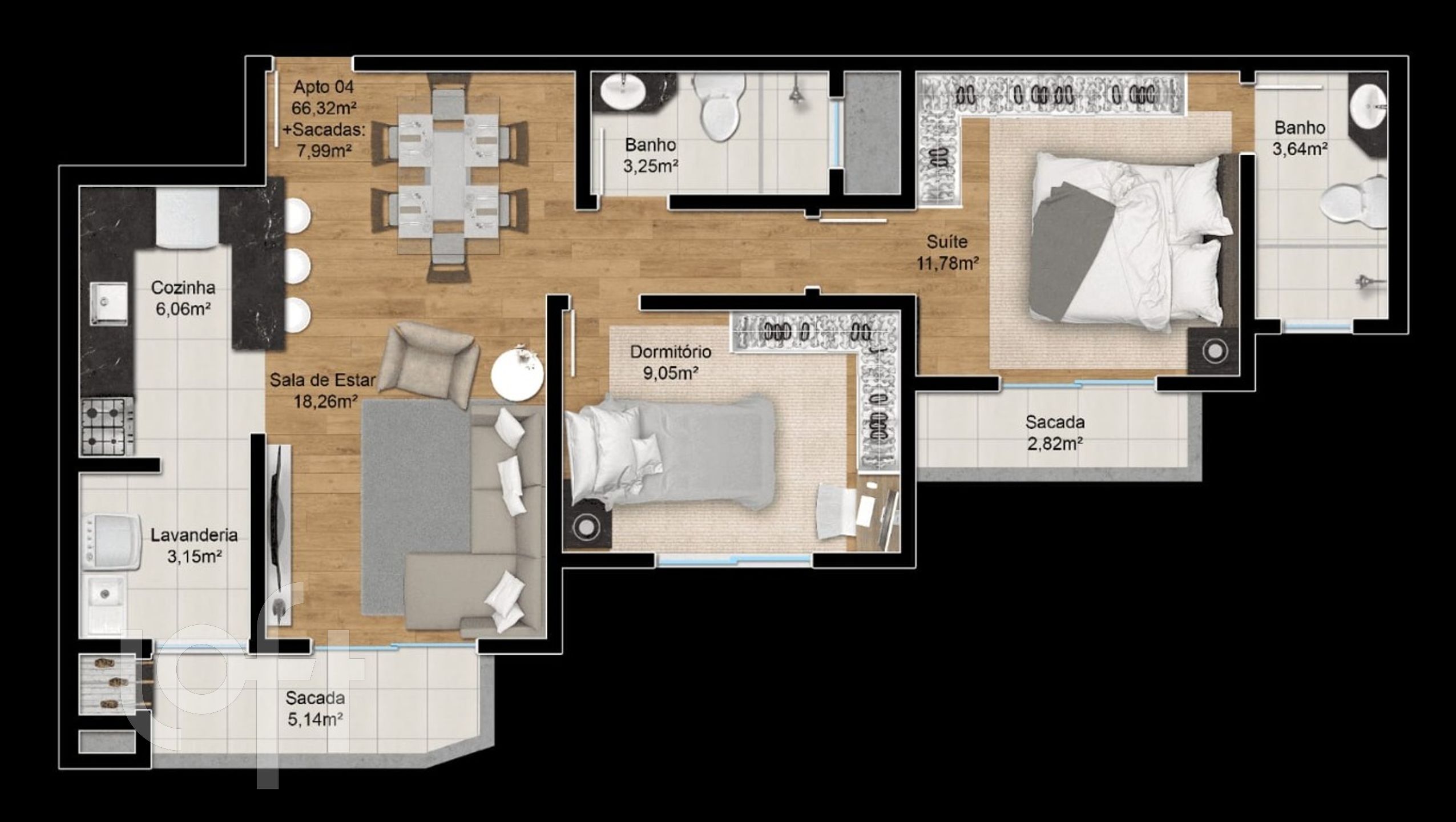 Área Privativa 96,54 m2